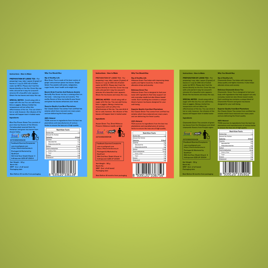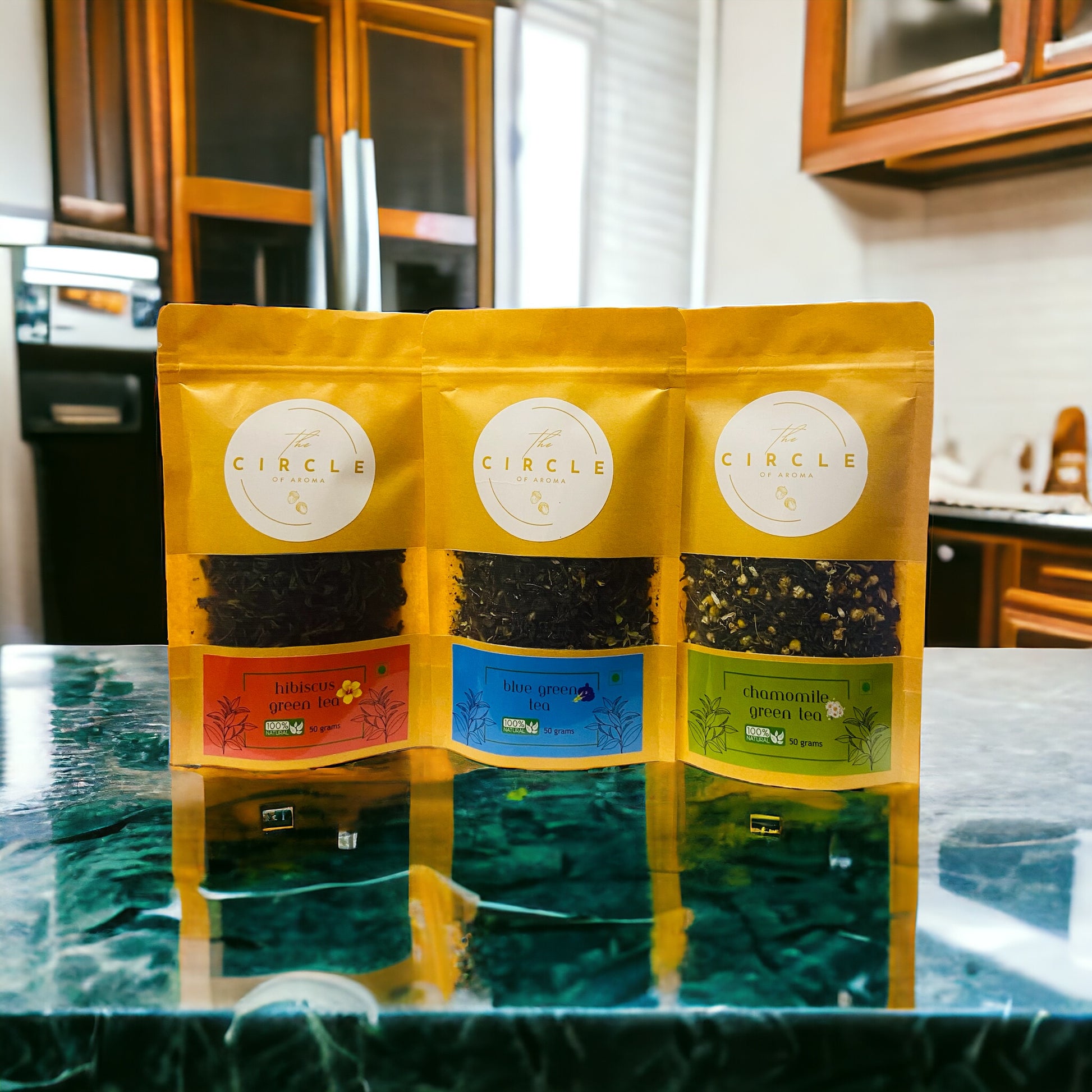 Combo of 3 Blue Tea,Hibiscus & Chamomile | 50g (25 Cups) Each Flavour